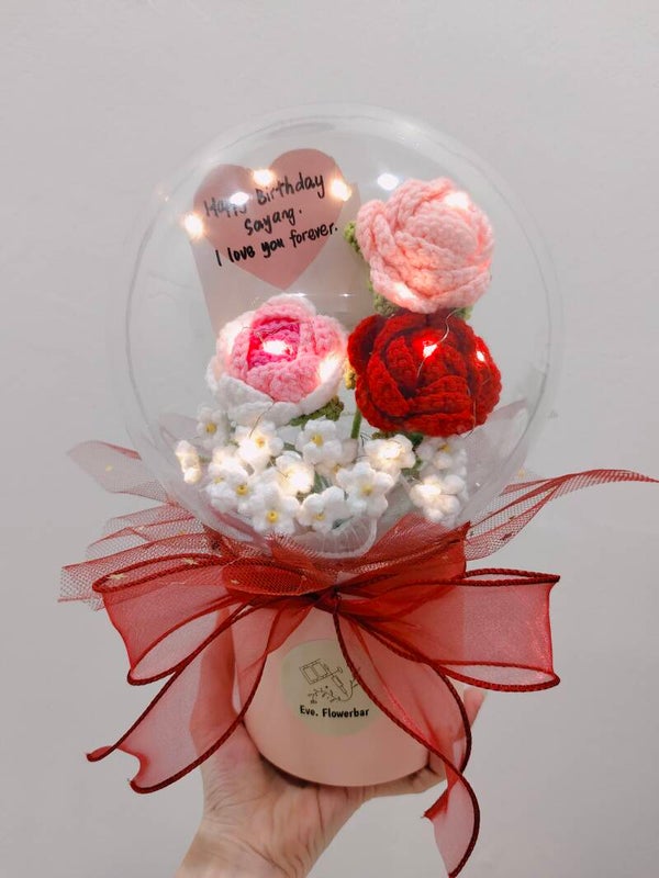 ACR0030 Rose baby breath acrylic pot