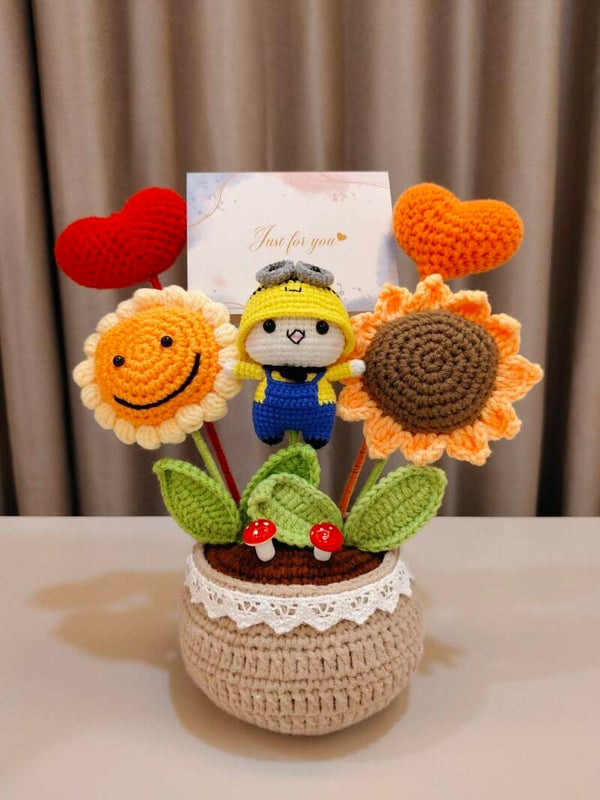 PCL0054 Bear in minion wear love sunflower pot